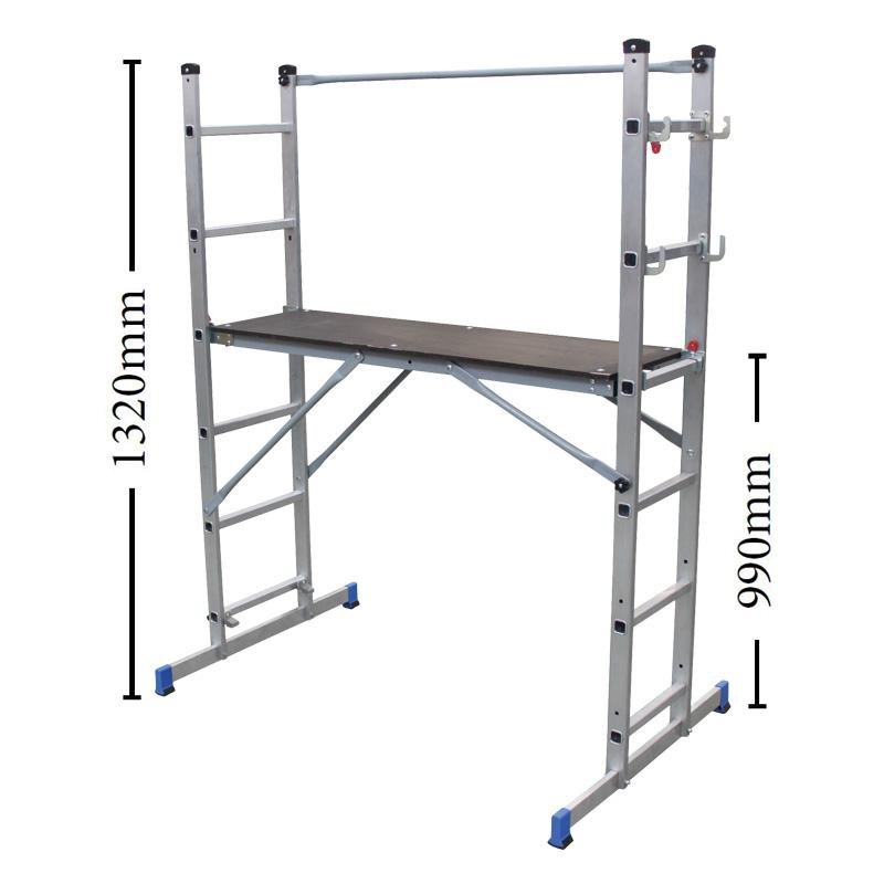 Φορητή Σκαλωσιά – Διπλή Σκάλα Αλουμινίου με 2χ6 Σκαλοπάτια, με Μέγιστο Φορτίο 150kg, Δυνατότητα Χρήσης σαν Σκαλωσιά, σαν Σκάλα Τύπου Λ ή σαν Επεκτεινόμενη Σκάλα, Έξυπνη Σχεδίαση και Εύκολη Συναρμολόγηση