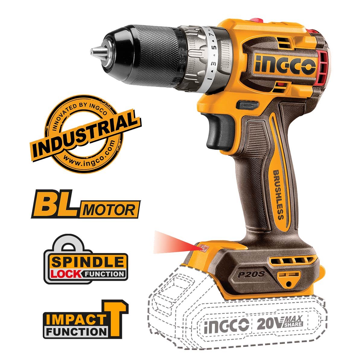 INGCO CKLI20275E ΣΕΤ ΚΡΟΥΣΤΙΚΟ ΔΡΑΠΑΝΟΚΑΤΣΑΒΙΔΟ & ΜΠΟΥΛΟΝΟΚΛΕΙΔΟ BRUSHLESS 20V ΜΕ 2 ΜΠΑΤΑΡΙΕΣ 2Ah ΚΑΙ ΘΗΚΗ (CKLI20275E)